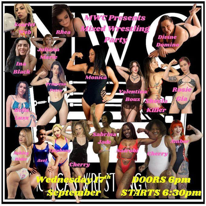 Here's the list of lady wrestlers scheduled for Monica's amazing Mixed Wrestling Party in October.
